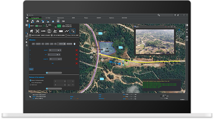 Ce module métier, compatible des versions Windows et Android, permet d’interagir avec les drones au travers du protocole MAVLINK. Il est ainsi possible de transmettre des ordres aux drones et de surveiller leurs paramètres.